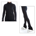 Jacket: Black tech figure skating training jacket in Fetex fabric with cellphone side pocket and thumb slit Elite Xpression