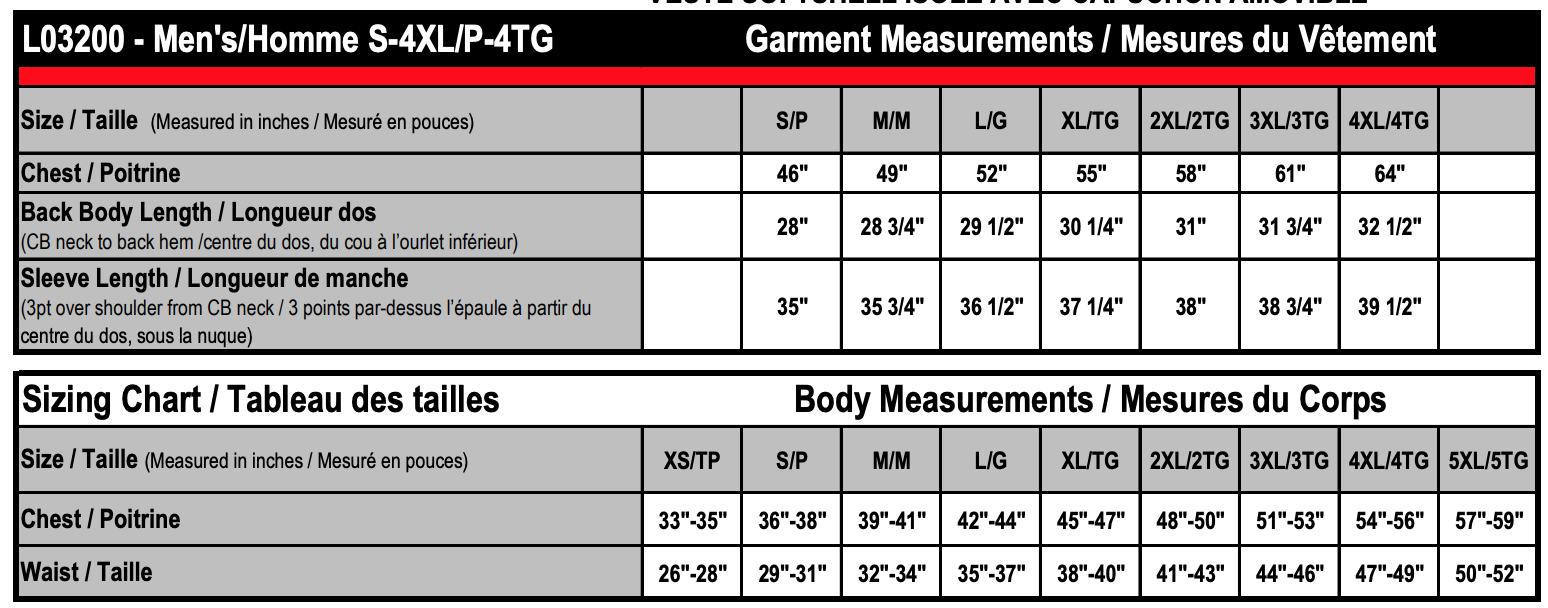 Chest 36"-38 39"-41" 42"-44" 45"-47" 48"-50" 44"-46" 57"-59"