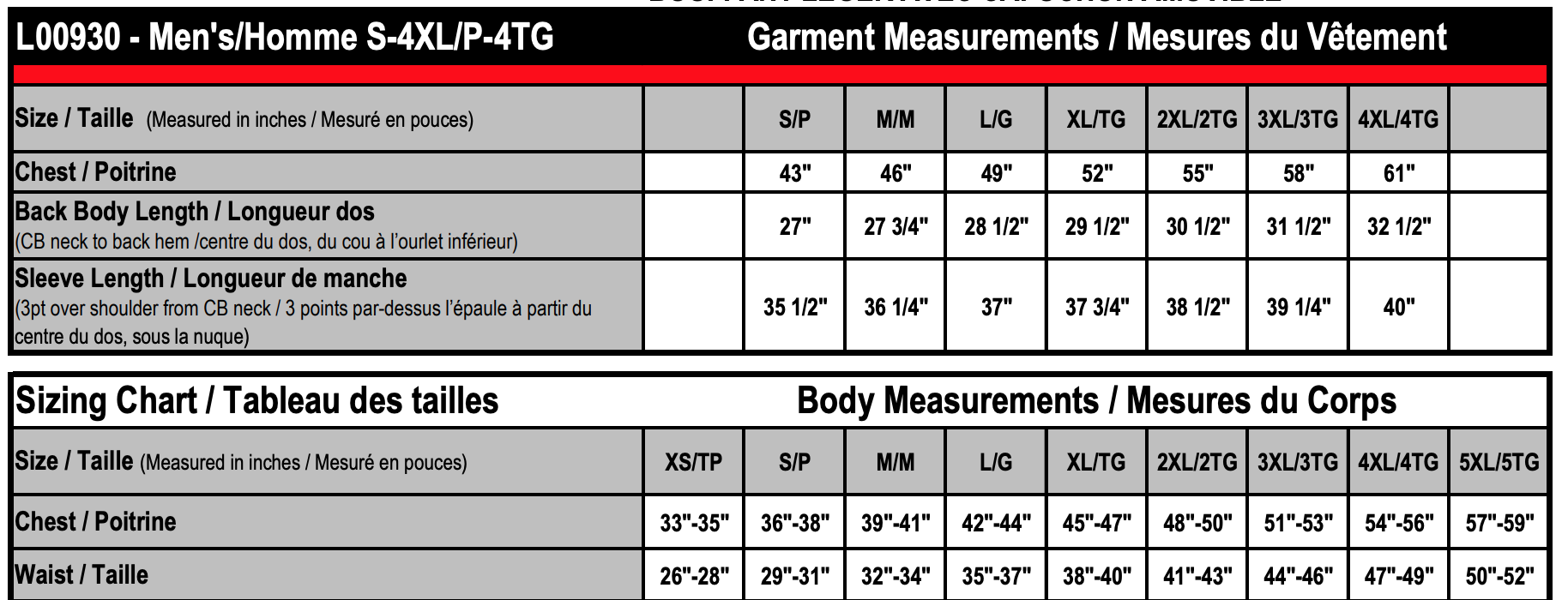 | Chest | 36"-38 | 39"-41" | 42"-44" | 45"-47" | 48"-50" | 44"-46" | 57"-59" |