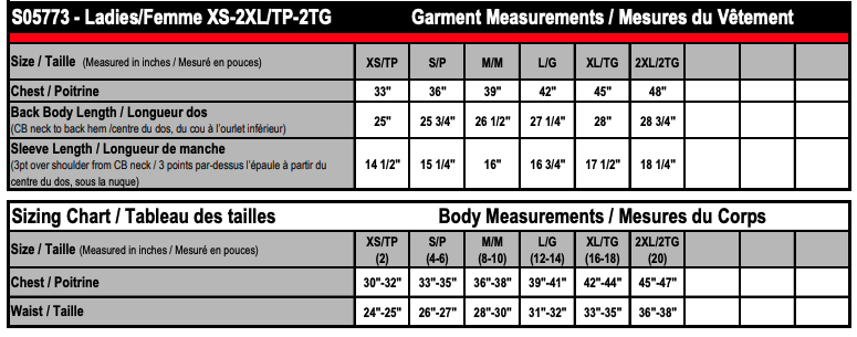 Back Body Length 25" 25.75" 26.5" 27.25" 28" 28.75"