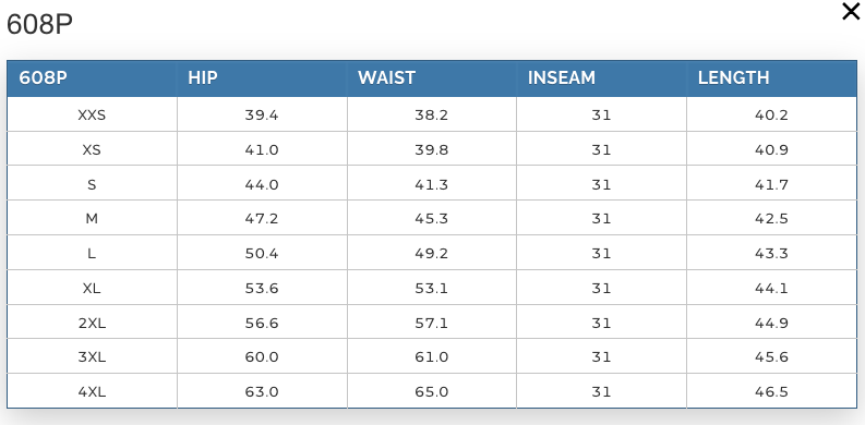 | Inseam | 31 | 31 | 31 | 31 | 31 | 31 | 31 | 31 | 31 |